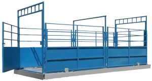 This 9 ft. weigh cage is heavily constructed & comes fitted with all the electronics necessary for livestock weighing. This self-contained unit also features adjustable sides to stop smaller livestock from turning within the cage, steel kick-panels on the lower half, ¼” plastic sheeting on the upper half to enable ear tags to be read via antennas and easy-open bi-sliding doors at either end. The unique design of the easy-slide doors allows the handler to open the head or rear gate when standing on either side of the cage – and with one hand. This system is certified Legal for Trade.