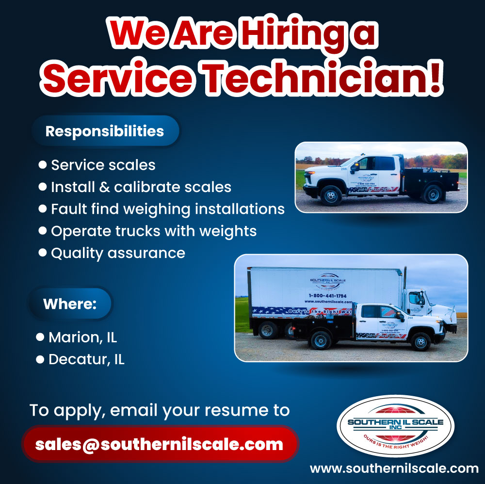 Join the Southern IL Scale team in Marion, IL or Decatur, IL as a Service Technician! Learn more about the job: https://southernilscale.com/vacancies/ Send us an email with Service Technician in…